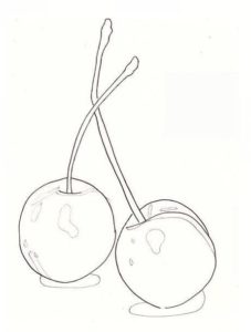 Outline drawing of cherries created using the previously mentioned reference picture.